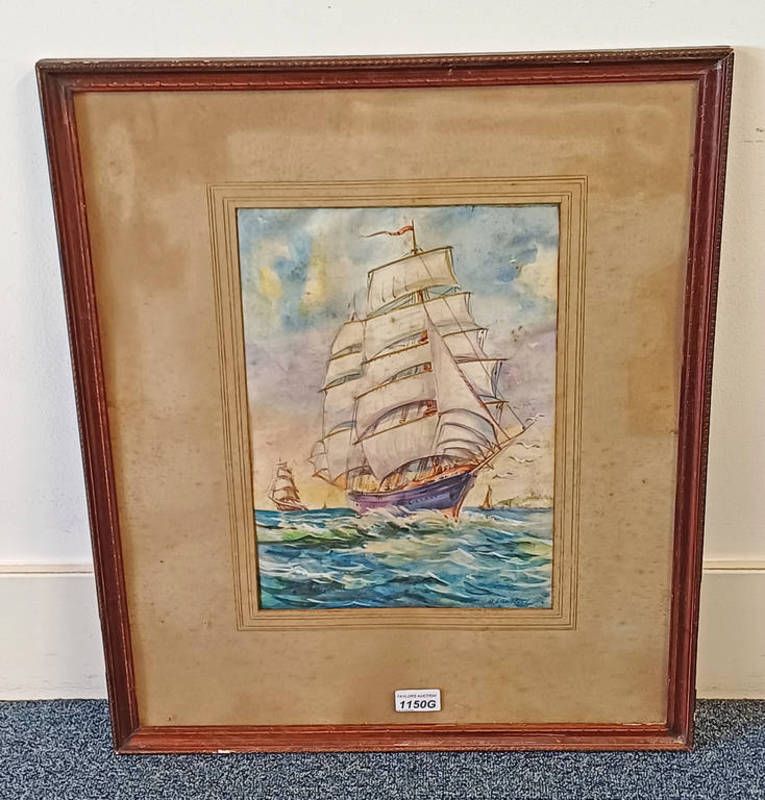 M lightbody (1941) - (arr) 2 masted sailing ship signed framed watercolour 34cm x 24cm