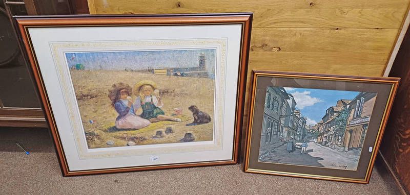 Framed limited edition print signed rene legrand of 2 children with dog & monet printlargest; 50cm x 59cm