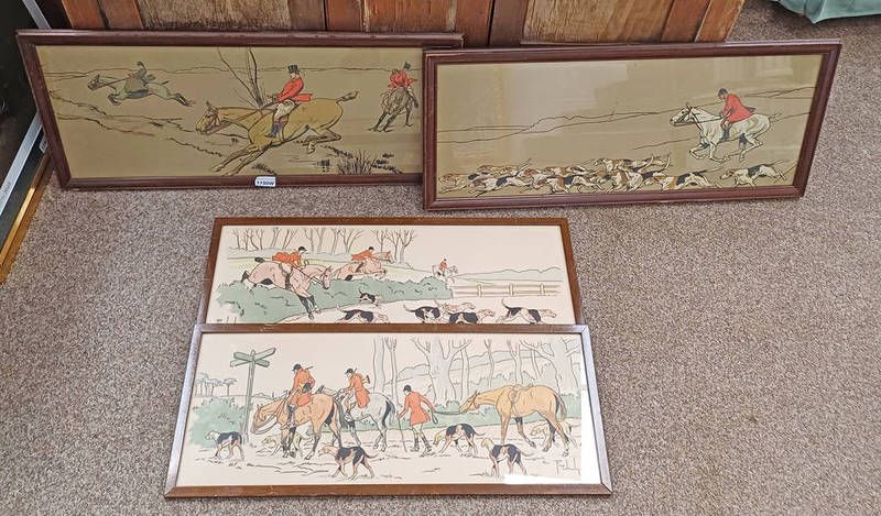 Pair of early 20th century hunting prints by lawrence jellico, 27 x 70 cm, & 2 other similar