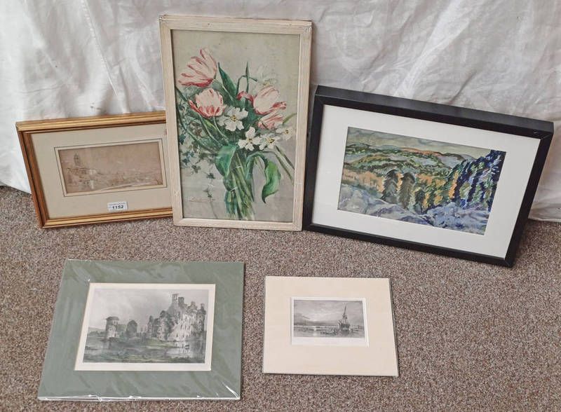 Framed sketch taken from frederika percivals sketch book, of acting scene, inscribed to reverse, and other pictures