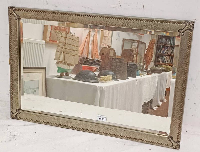 Arts and crafts style metal framed mirror, with bevelled edge, 38cm x 60cm