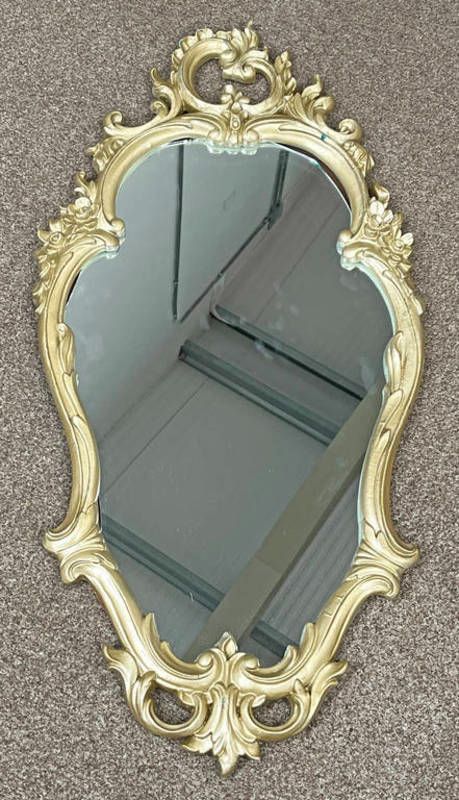 Gilt framed mirror with floral decoration to frame, approx. 65 x 40 cm