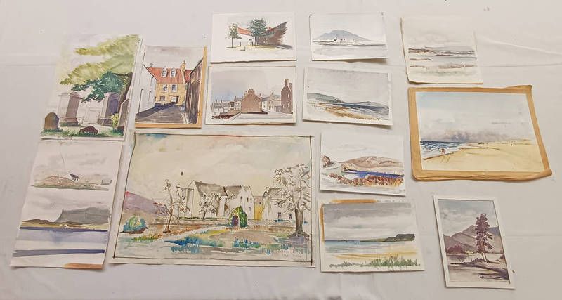 Unframed watercolours of dundee and surrounding areas, some signed kenneth l.s. murdoch