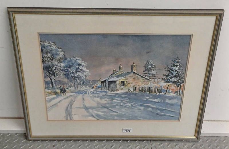 John stoa auchtenhouse in winter signed framed watercolour 38cm x 51cm