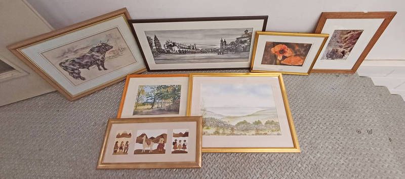 Elspeth younger, ''indian summer'', label to reverse, framed watercolour, and various others. largest: 32cm x 75cm