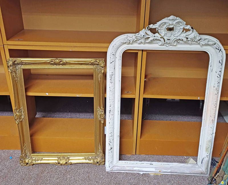 Gilt picture frame with floral decoration, 67cm x 47cm, and one other frame (a/f)