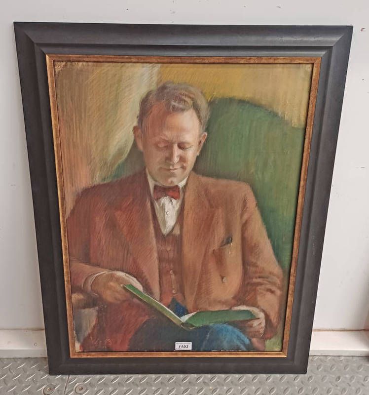 Pastel portrait of a young man reading, initialled 'w' and dated 1945. american school, 65cm x 48cm