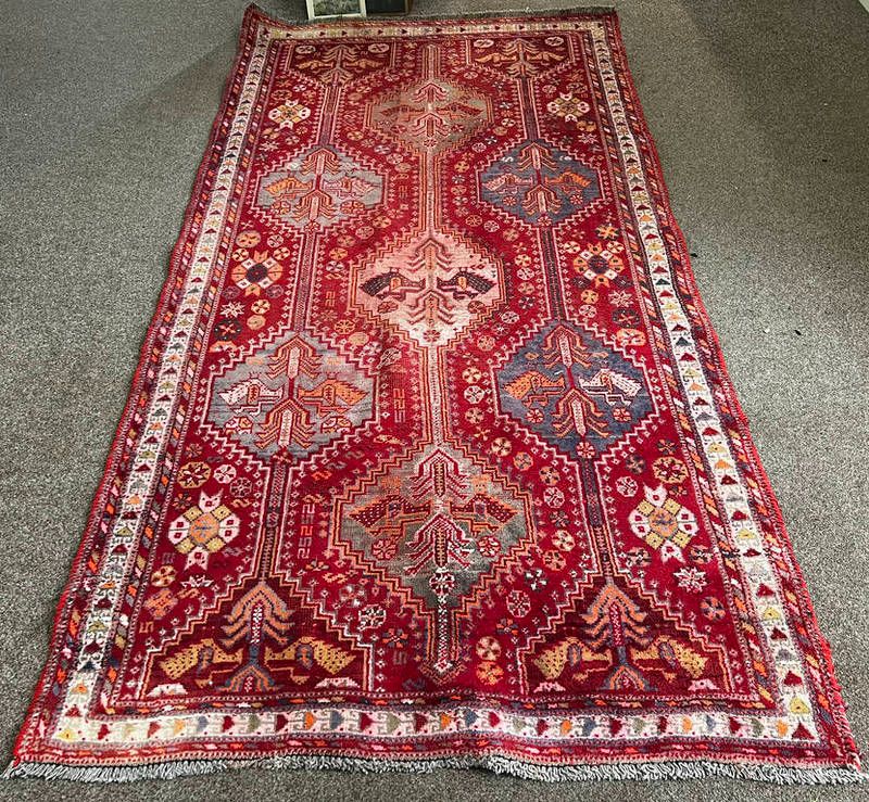 Large red ground middle eastern carpet with border decoration, 320cm x 570cm