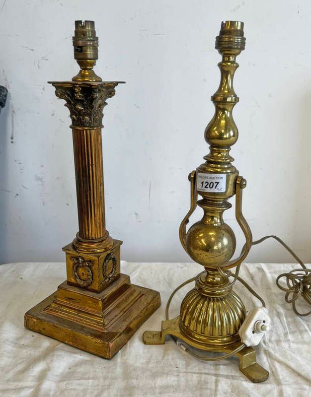 Late 19th or early 20th century gimble light fitting 41.5cm tall & a corinthian column lamp 43cm tall -2-