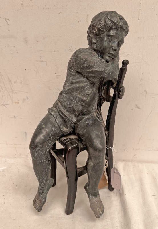 Late 19th century or early 20th century ''dark town battery'' cast iron mechanical bank, 25cm...