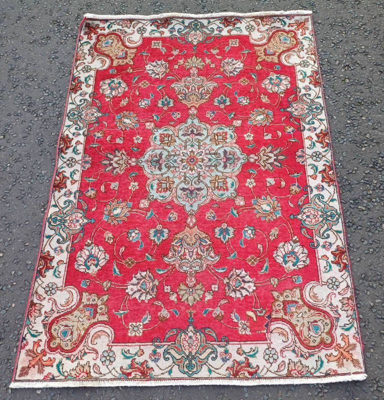 Multicoloured persian tabriz carpet with central medallion design 315 x 182cm