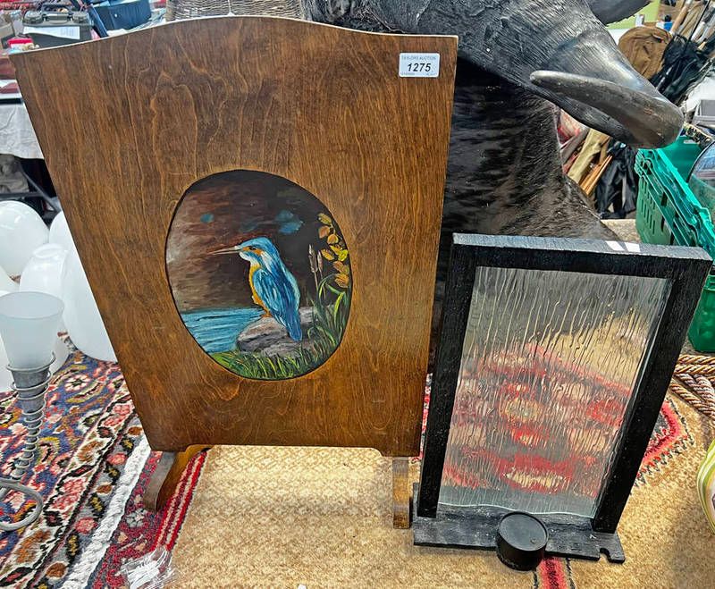 Fire screen with painted king fisher scene 61cm tall & 1 other -2-