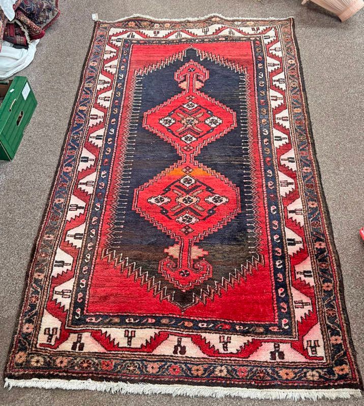 Red ground middle eastern rug with central design and double border design 117 x 195cm