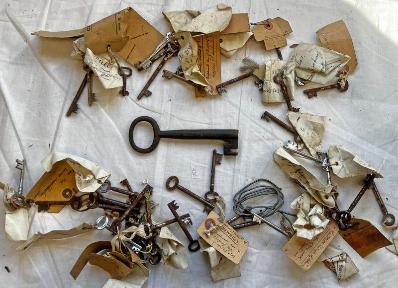 Selection of antique & other keys to include a 16cm long iron example, etc