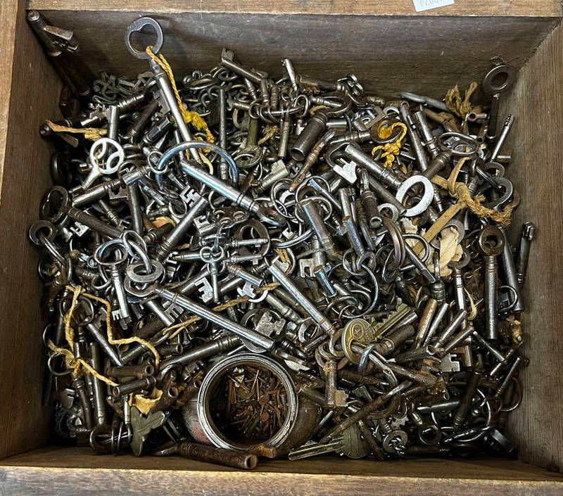 Selection of antique & other keys to include a 16cm long iron example, etc