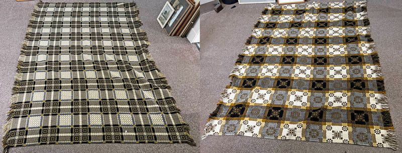 Two yellow and black woven throws, one marked holytex pure virgin wool welsh woolers 250 x 180cm