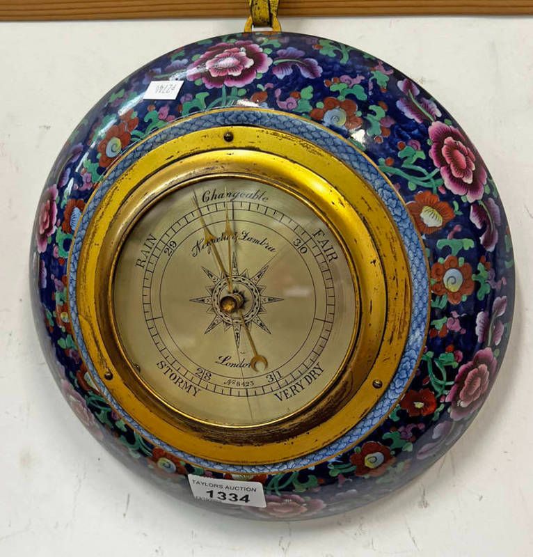 Negretti & zambra circular wall barometer with a porcelain body, 25cm across