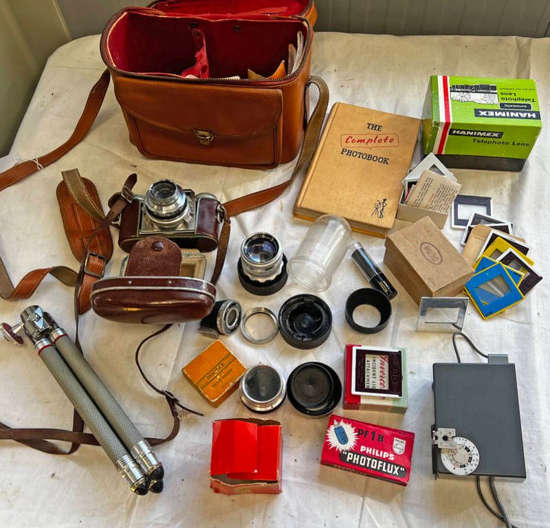 Braun super paxette camera with schneider - kreuznach xenar 1:2,8/50 lens, telenax 1:3,8/90mm lens, view finder, isco-gottingen westron 1:3,5/35 lens, practos etc