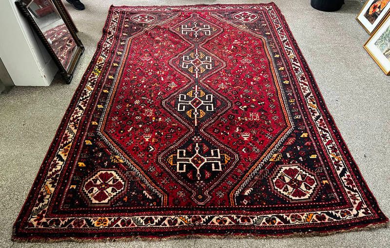 Large red ground middle eastern carpet with border decoration, 320cm x 570cm