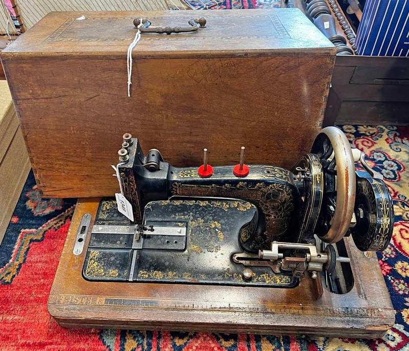 Acme mangle in its original card box and a singer sewing machine, serial number 10293588...