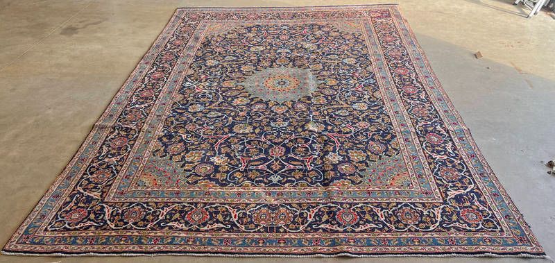 Large persian kashan carpet with traditional shardafi lozenge medallion design 385 x 285cm