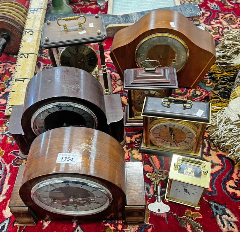 Mantle clocks to include makers such as kundo, metamec, etc and a dominion carriage clock -7-