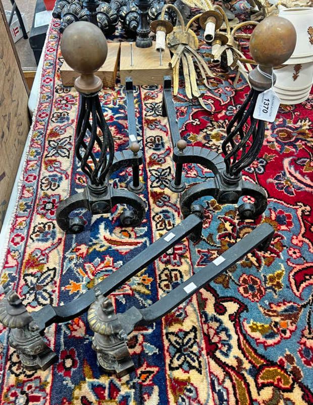 Pair of fire dogs with globular terminals along with one other pair of fire dogs -2-