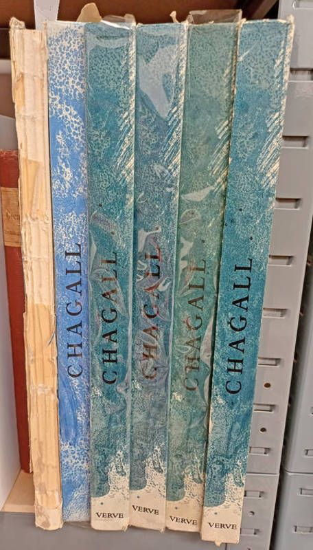 Illustrations for the bible by marc chagall, lacking colour lithographs - 1956, together with the french edition (verve no. 33 & 34) which also lacks the colour plates and 4 copies of dessins pour la bible (verve nos 78 & 38) by marc chagall, again lacks colour plates - 1960 -6-