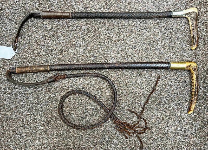 2 leather wrapped riding crops, 1 stamped swaine -2-