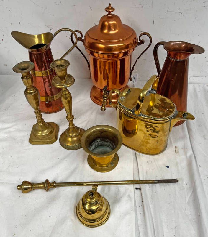 Copper samnovar, copper jug with brass bands, copper jug, brass kettle, etc
