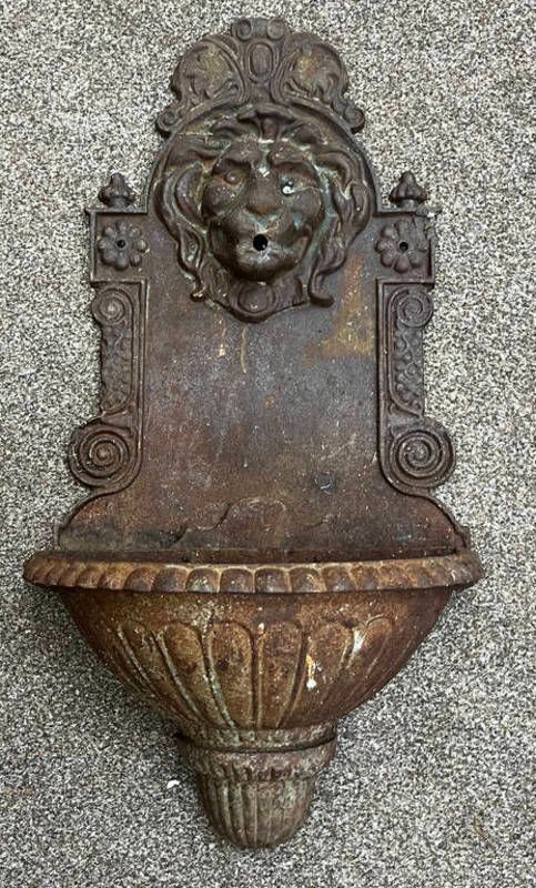 Large cast iron kettle with fluted spout, lid & curved handle 36 cm tall