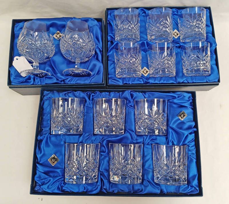 Selection of edinburgh crystal including champagne flutes, sherry glasses, wine glasses and others. all boxed