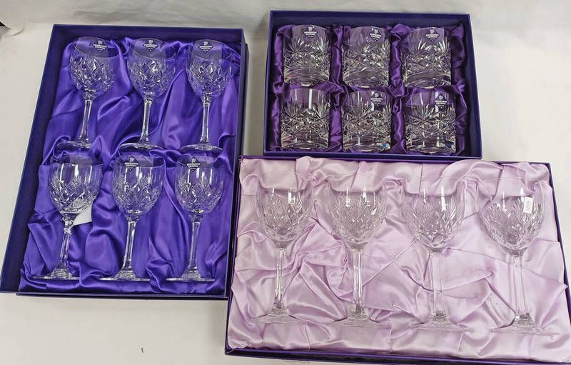 3 boxed sets of edinburgh crystal glasses
