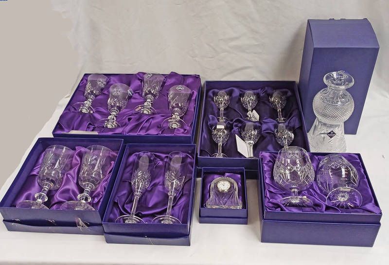 Selection of edinburgh crystal including champagne flutes, sherry glasses, wine glasses and others. all boxed