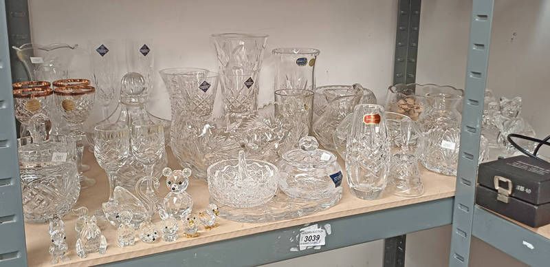 Selection of stuart crystal swarovski birds, etc on 1 shelf