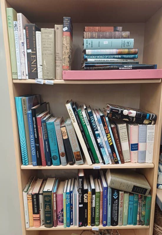 3 shelves of various books including the rise & fall of the 3rd reich, good selection of aberdeen golf club books, etc