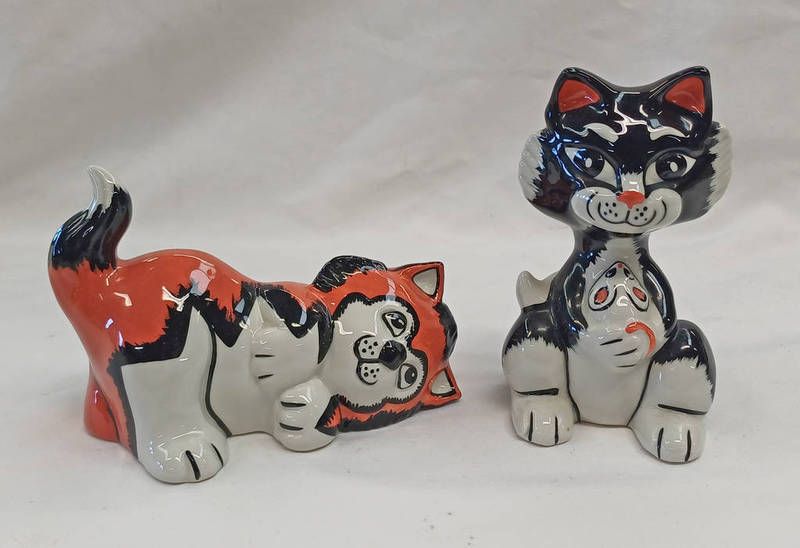Two lorna bailey porcelain cats. tallest 11.5 cm