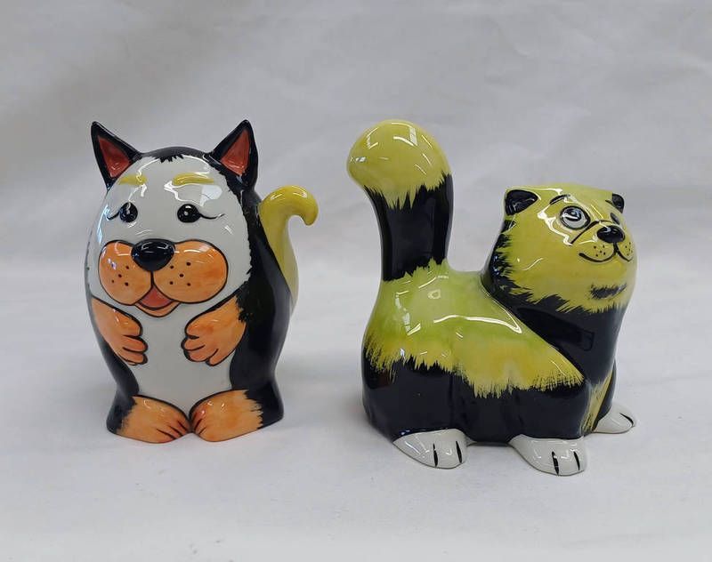 Two lorna bailey porcelain cats - tallest 13.5 cm