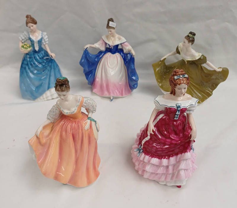 5 royal doulton porcelain figures including hn1824 - top o' the hill, hn2193 - fair...