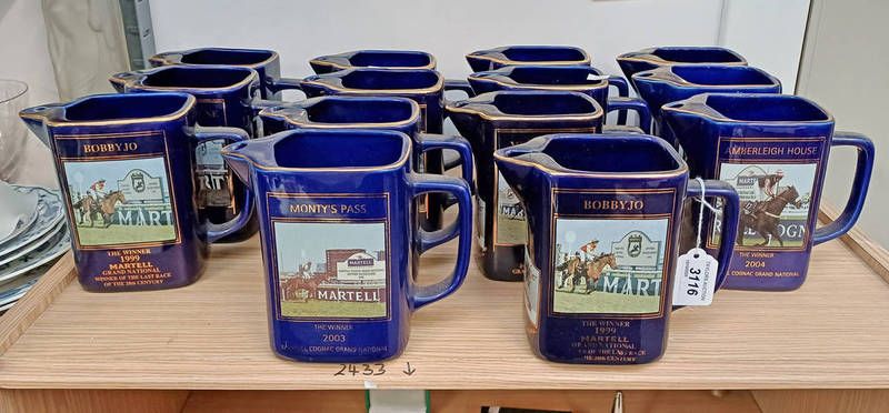 Selection of martell cognac grand national water jugs