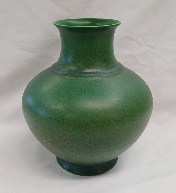 Royal lancastrian bulbous vase with mottled green decoration marked 2501 to base - 25 cm tall