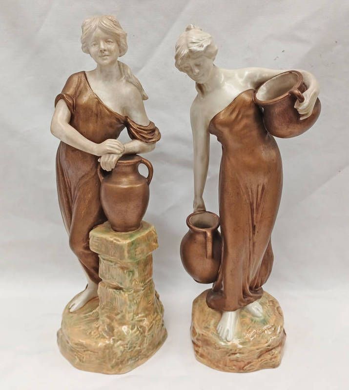 Two royal dux style porcelain figures of maiden water carriers - 35 cm tall