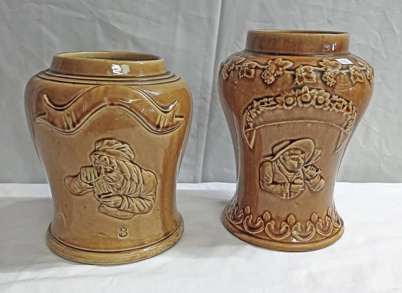 Two 19th century stoneware snuff jars one marked grosvenor glasgow to base - 27 cm tall and one other