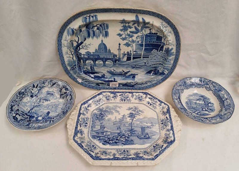 19th century blue & white pottery ashet with tiber or rome pattern with similar items