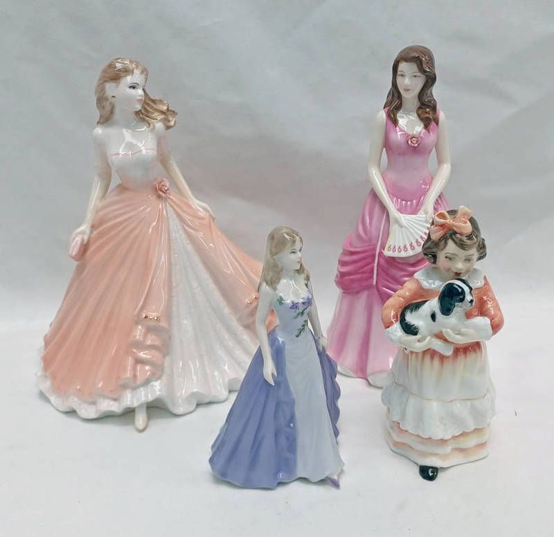 Two royal doulton porcelain figures: grace & faithful friend and two coalport figures: congratulations & emily. all boxed