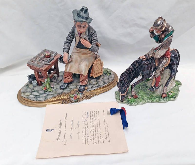 Two naples porcelain figures of a cobbler and don quiscate - tallest 27 cm