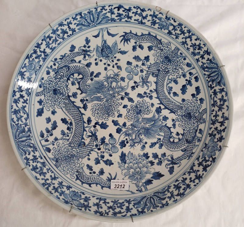 Large 19th century chinese porcelain dish with dragon decoration - 47 cm diameter