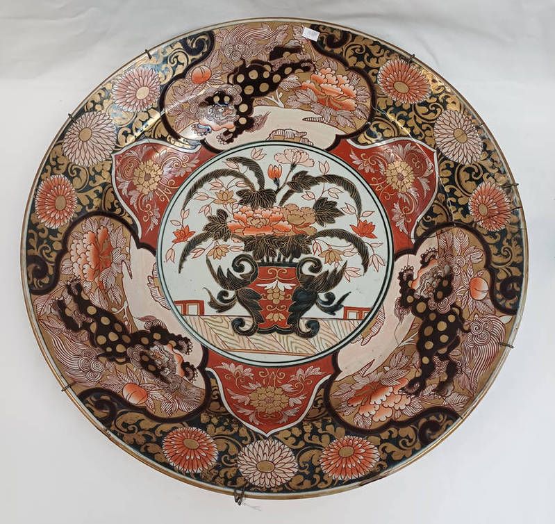 Large 19th century chinese imari charger - 55 cm diameter, damages