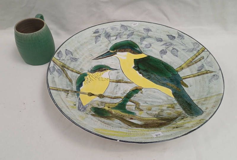 Poole pottery large charger with kingfisher decoration (diameter 42cm) together poole pottery mug