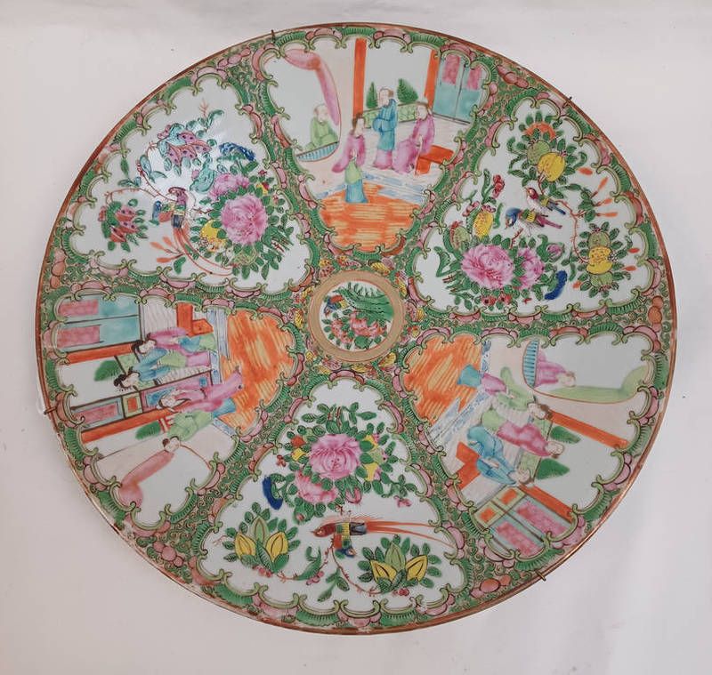 19th century chinese famille rose canton porcelain plate. diameter 37cm